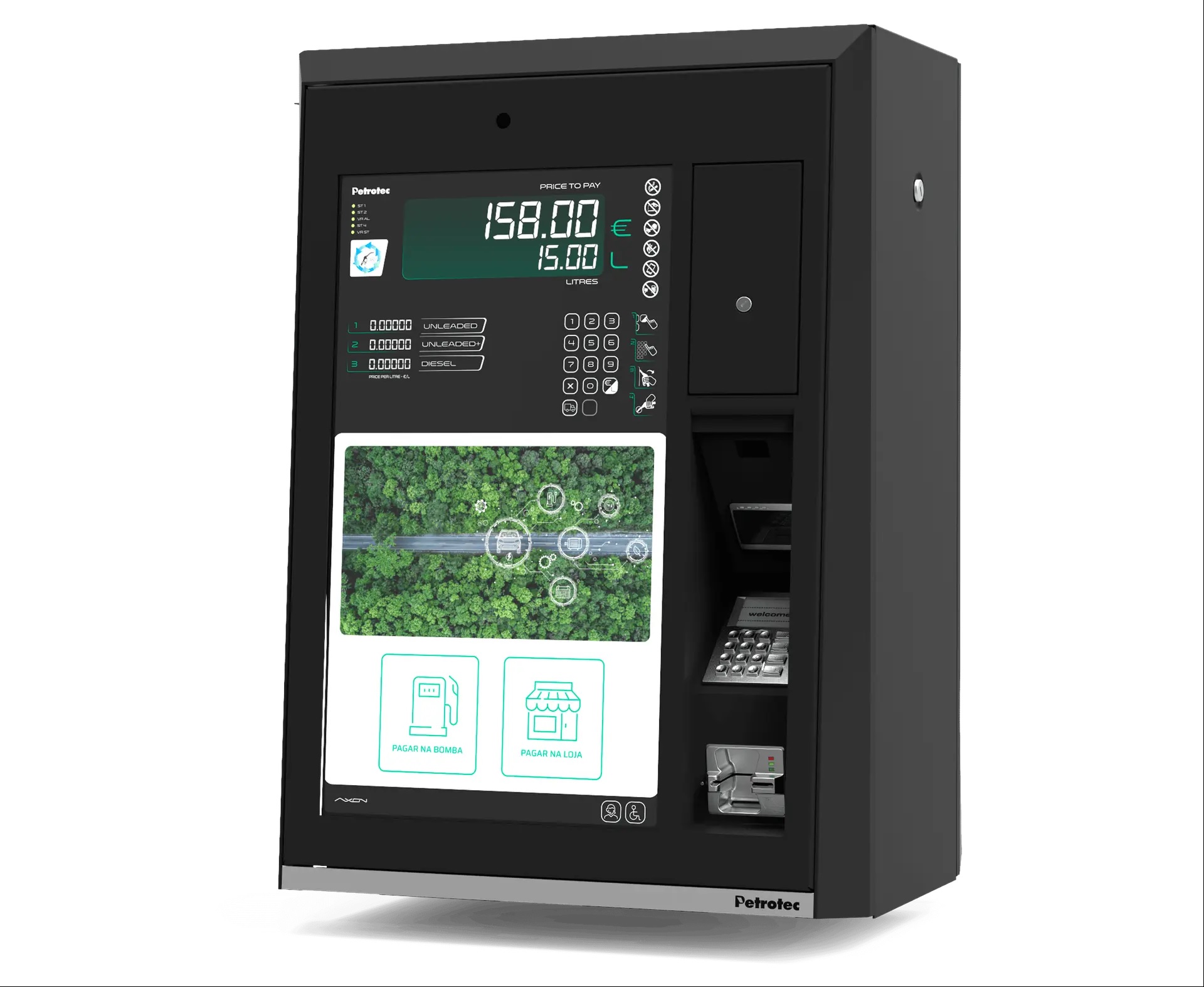 A solução pode ser instalada na gama AXON de dispensadores Petrotec ou funcionar como uma unidade autónoma (retrofit) em equipamentos existentes, oferecendo total interoperabilidade e escalabilidade para diferentes configurações de postos.