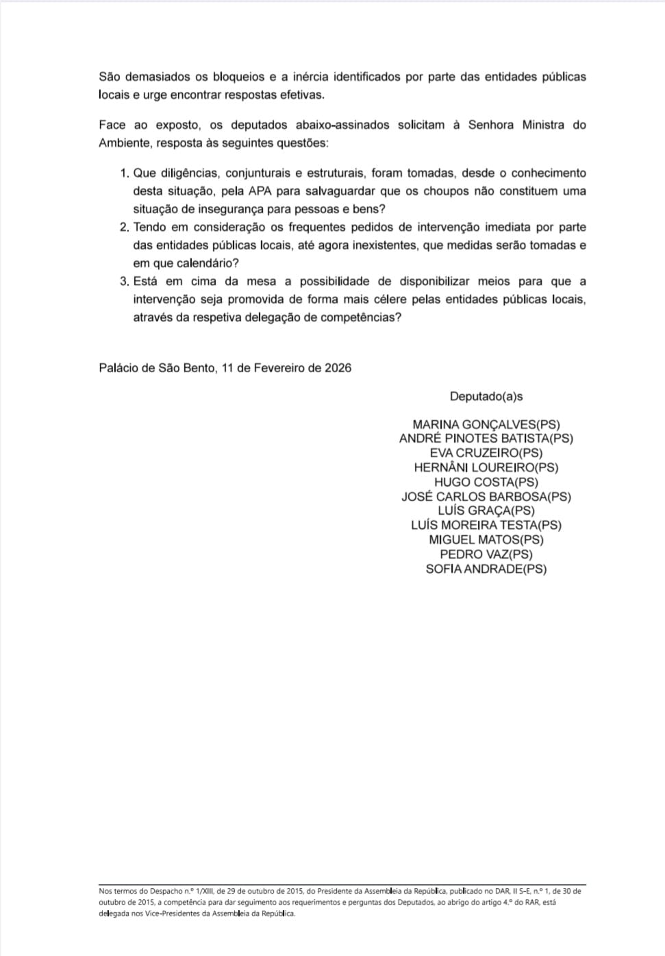 Face ao exposto, os deputados abaixo-assinados solicitam à Senhora Ministra do Ambiente, resposta às seguintes questões: