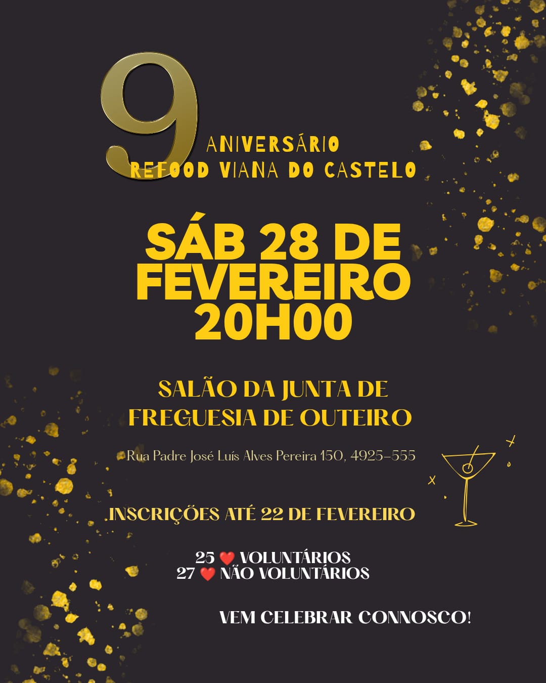 vai realizar-se um jantar solidário de angariação de fundos e comemoração do nono